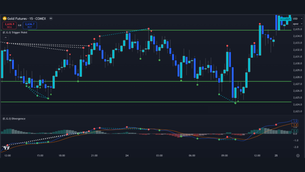 A classic case would be plotting the Relative Strength Index (RSI) on a chart. If a stock continues to push to higher highs, but the RSI prints lower highs, that’s called bearish divergence, and it often precedes a market pullback or reversal. Conversely, if the price makes lower lows while the RSI begins to rise, this bullish divergence may signal that sellers are losing strength. Ultimately, divergence isn’t a standalone entry signal; it’s a way to assess the underlying strength of a move. Traders use it in conjunction with price action, volume analysis, or tools like the E.G. Trigger Point, to time entries and exits more precisely.