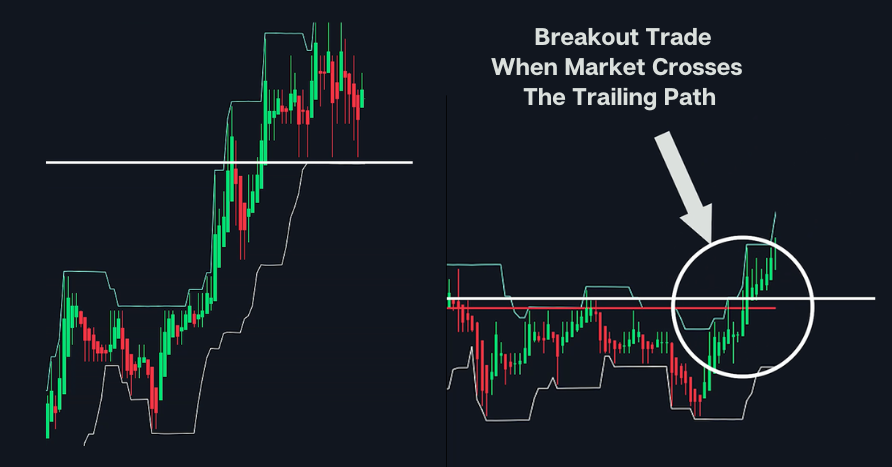 E.G. Trailing Stop automatically maps the ideal trailing path based on real-time volatility, using the Average True Range (ATR) to adapt dynamically to market conditions. This approach helps you stay in winning trades longer, capture larger moves, and manage open positions with less emotional interference.